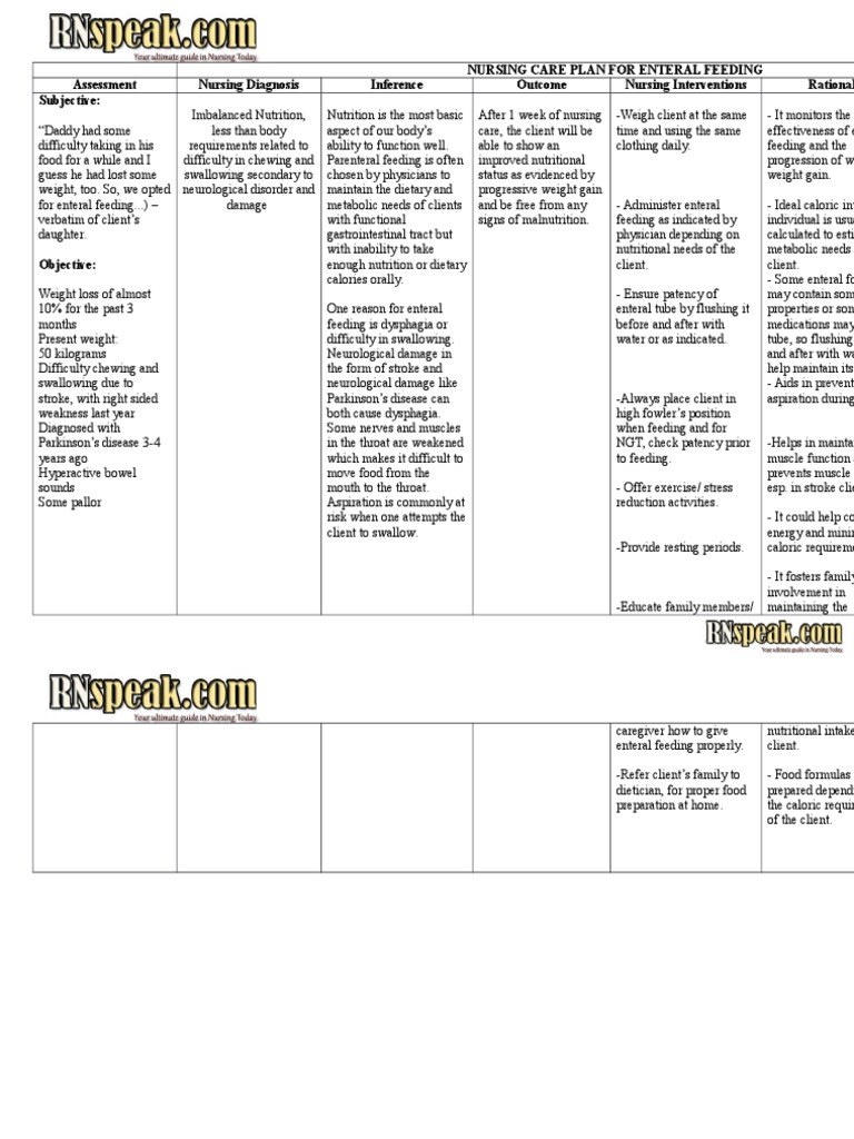 Imbalanced nutrition becomes more than body requirements when the intake of nutrients exceeds. It is the substance, procedure , and setting involved in ensuring the proper intake objectives • to present the components of the nutrition care plan • to discuss the different. Start studying nutrition care plan. Adequate nutrition is very essential to the human body because it supplies the daily metabolic impaired swallowing nursing diagnosis & care plan. Nursing diagnosis for peritonitis :