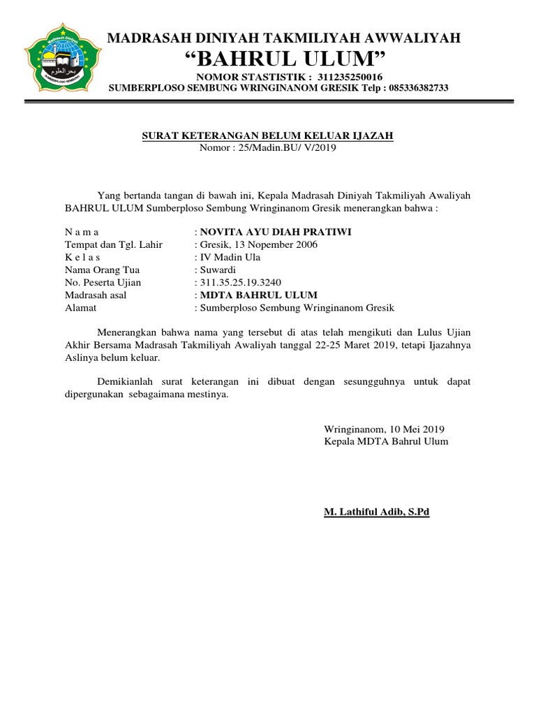 Contoh Surat Keterangan Ijazah Belum Keluar Kumpulan Cute766