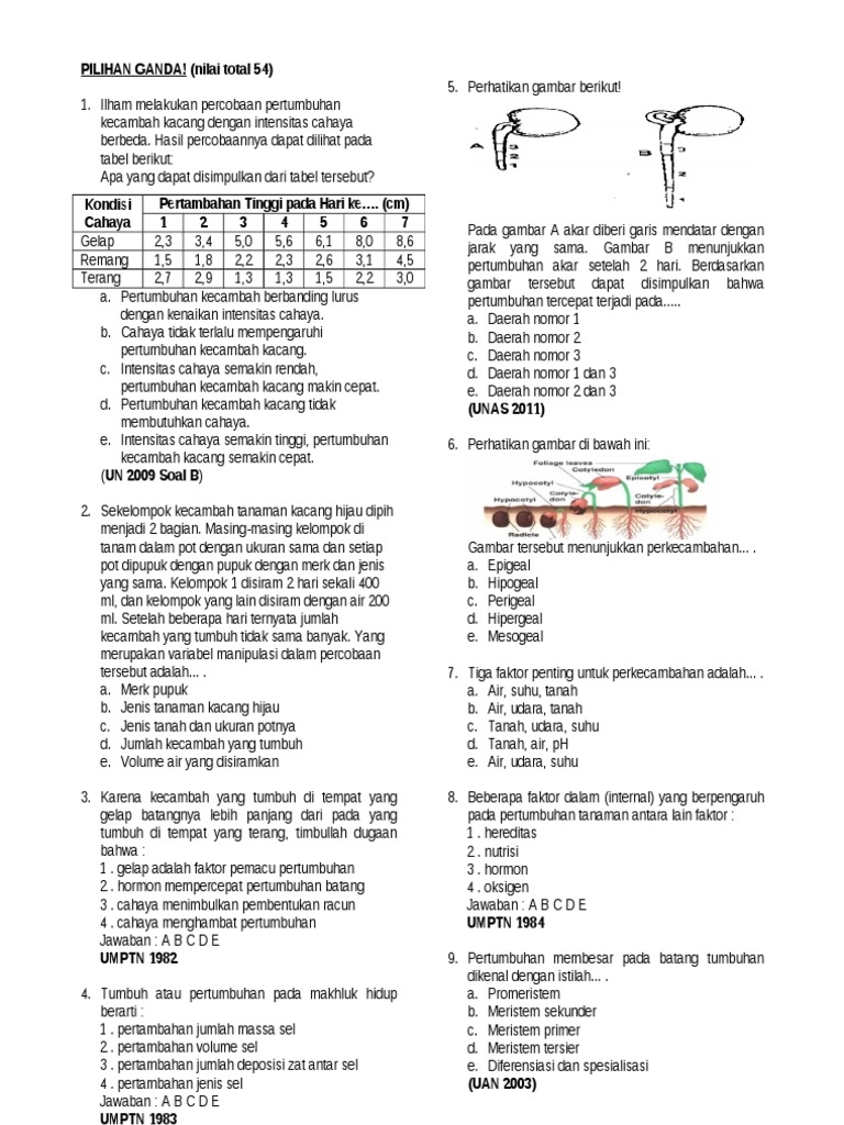 Kumpulan Soal Kelas Xii Pertumbuhan Dan Perkembangan