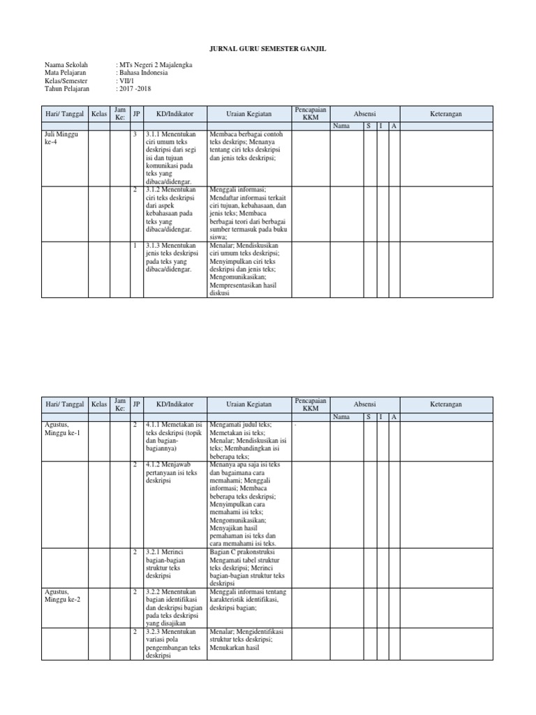 Jurnal Guru Bahasa Indonesia Semester Ganjil