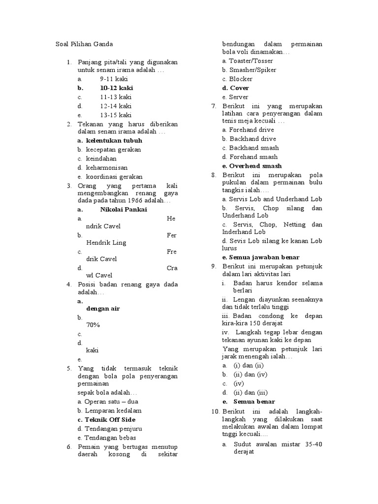 114 Contoh Soal Pg Senam Lantai Irama Dan Jawabannya