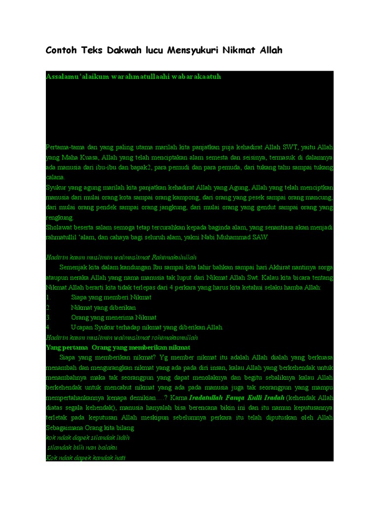 Contoh Teks Dakwah Lucu Mensyukuri Nikmat Allah Docx