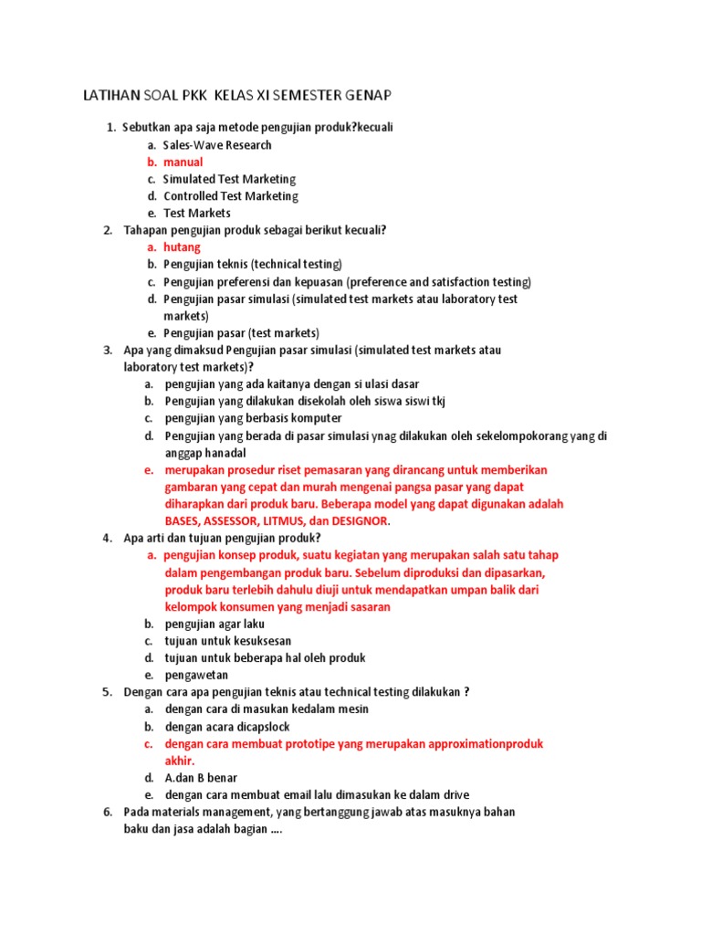 Latih orang untuk hidup dengan mudah. Berikut contoh soal mid prakarya dan kewirausahaan kwu kelas 11 semester satu dengan kunci jawabannya untuk siswa smamasmk. Contoh soal penjas kelas 12 semester ganjil beserta jawabannya.