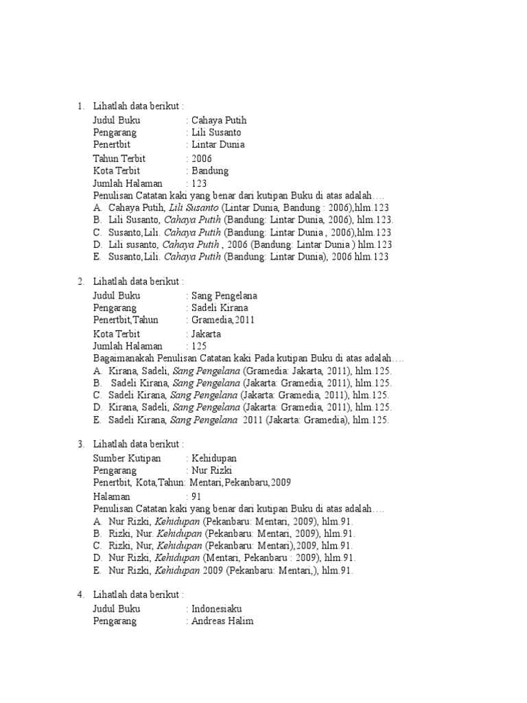 Contoh Soal Catatan Kaki Dan Jawabannya