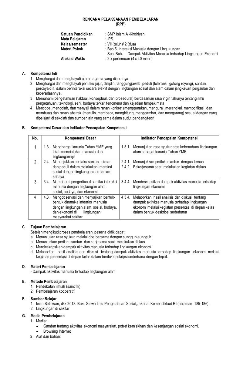 Rpp Interaksi Manusia Dan Lingkungan